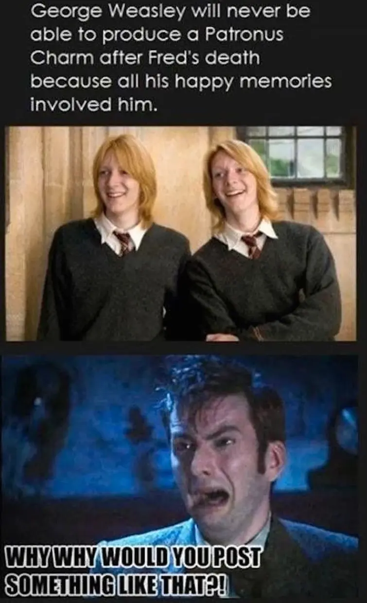 George Weasley Standing At The Coffin At Fred S Funeral I Can T Believe I Have To Say Goodbye I Need A Moment On My Own Guys The Rest Of The Weasleys Ok Take